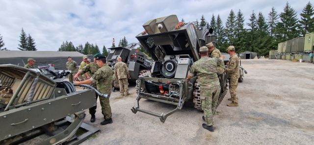 EUMAM - výcvik v  zodpovednosti pozemných síl „ ZUZANA 2 a BOŽENA IV,V“ Príslušníci pozemných síl naďalej pokračujú v podpore výcviku ozbrojených síl Ukrajiny v rámci vojenskej podpornej misie Európskej únie pre Ukrajinu „ EUMAM“. V mesiacoch september a október profesionálni vojaci 91.ženijného pluku a 5. delostreleckého oddielu pripravili a vykonali výcvik zameraný na získanie spôsobilostí na údržbu a výcvik obslúh na techniku, ktorou OS UAF disponujú. Účelom výcvikového modulu v zodpovednosti 21.sho za riadenia NŠ oddielu bolo naučiť cvičiacich základné zručnosti v manipulácii so zbraňovým systémom 155mm ShKH Zuzana 2. Poskytnúť obsluhám základné znalosti a vedomosti z oblasti údržby a ošetrovania zbraňového systému. Výcvik bol rozdelený do štyroch častí od výcviku špecialistu so zameraním na činnosť obsluhy v základných úkonoch spojených s funkciou systému až po výcvik čaty so zameraním na vedenie palieb. Výcvik úspešne ukončili všetci príslušníci OS UAF. Cieľom výcvikového modulu v zodpovednosti 902.žpr za riadenia ZV práporu bolo pripraviť príslušníkov OS Ukrajiny k vykonávaniu údržby a bežných opráv odmínovacieho kompletu Božena IV a V. V rámci výcviku boli vykonávané ošetrovania prídavných zariadení a tiež aj aplikované postupy základného a technického ošetrenia. Oba výcviky boli logisticky podporené príslušníkmi bsp. Najlepší príslušníci - cvičiaci z oboch výcvikových modulov boli odmenení medailou veliteľa PS.